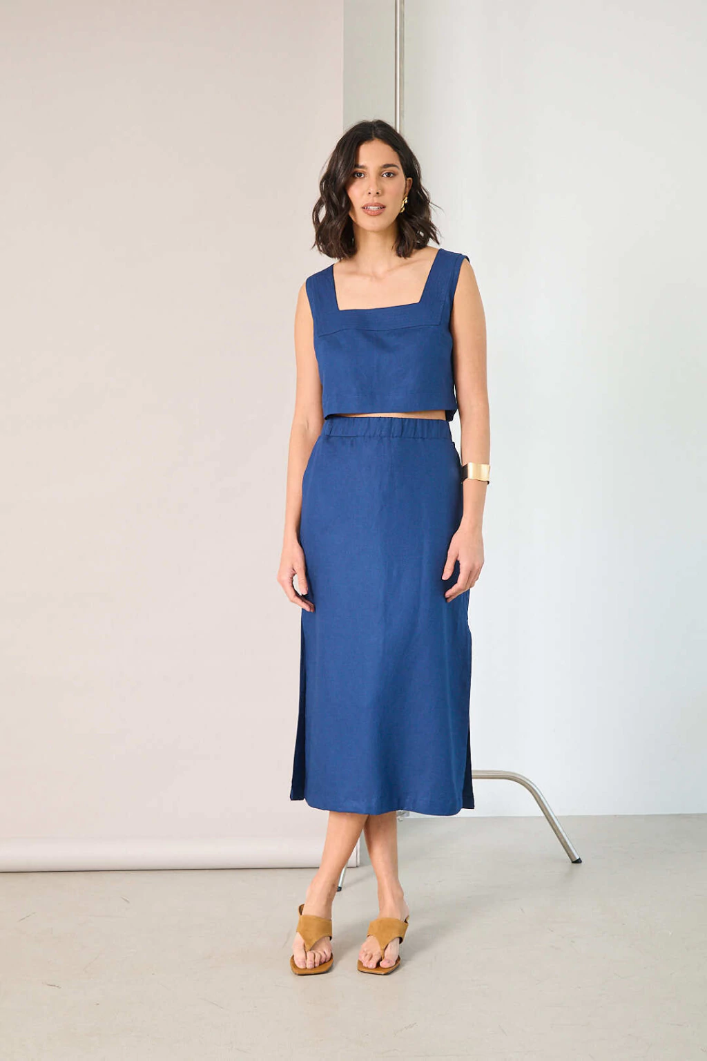 A Saia Linho Gaia é uma peça midi feita para quem busca sofisticação sem abrir mão do conforto. Com elástico na cintura e caimento impecável, ela é versátil para o dia a dia e elegante para ocasiões especiais.