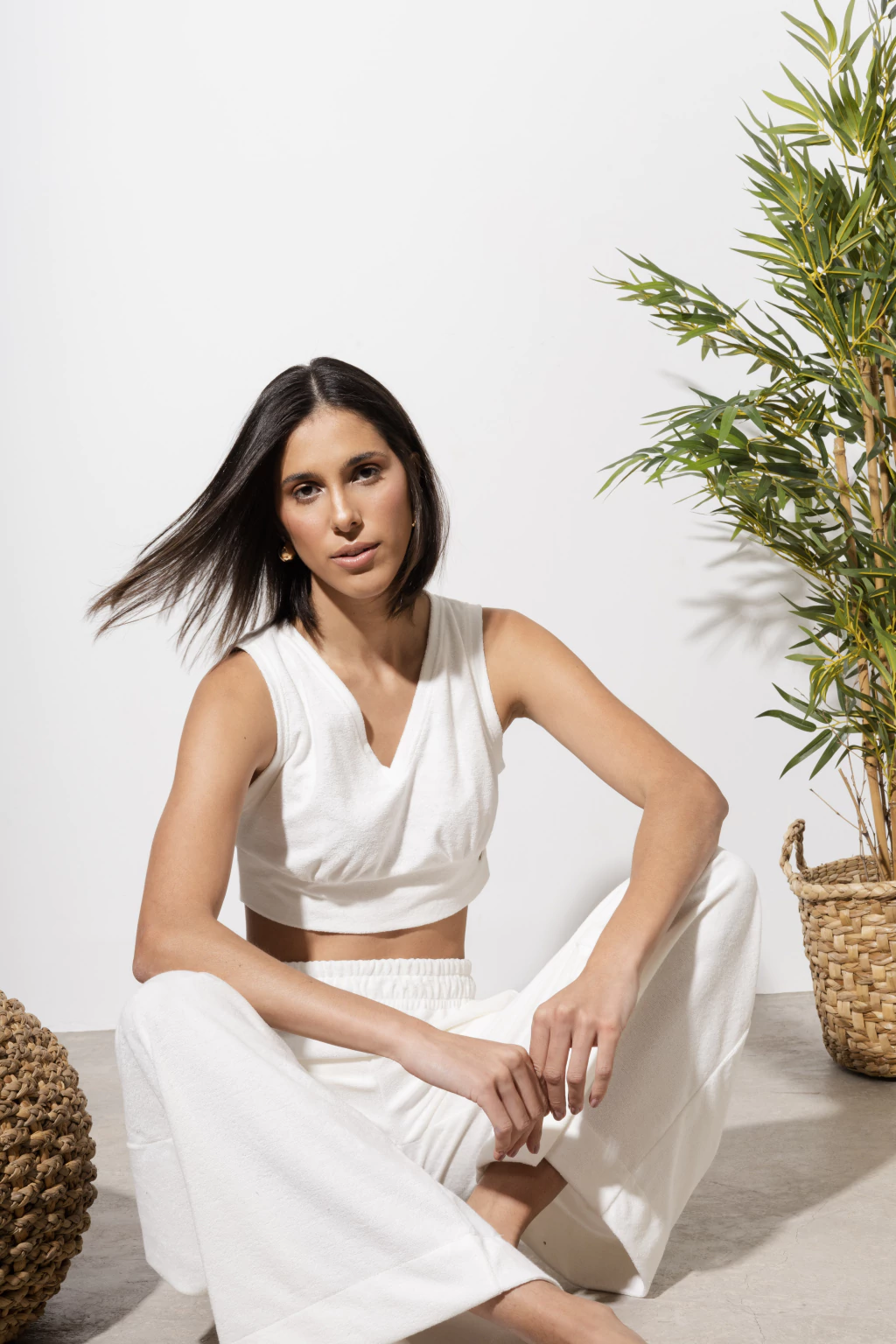 Combine com a nossa Calça Atoalhada Brisa ou Shorts Atoalhado Luz. Uma ótima opção é usar a nossa Camisa Atoalhada Lunar ou Colete Atoalhado como terceira peça, por cima do Top Atoalhado Solar.