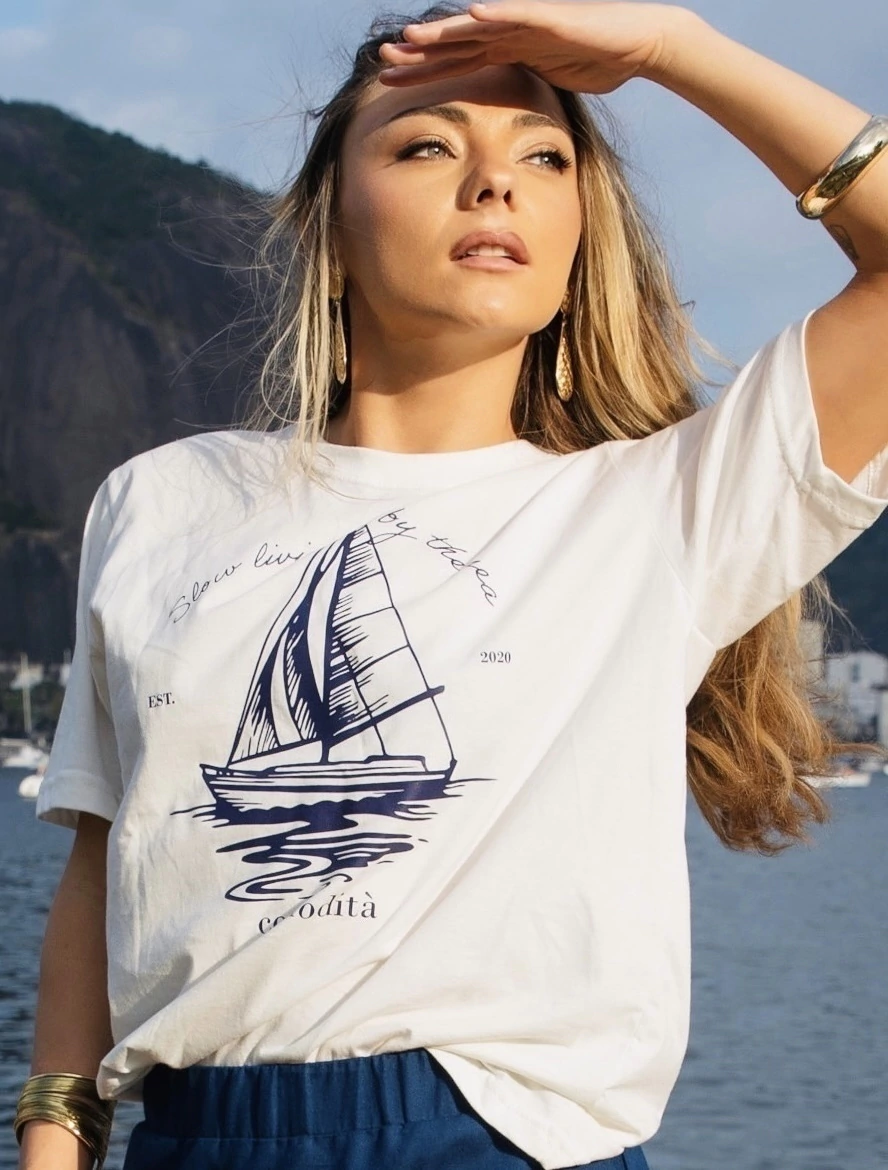Confeccionada em 100% algodão premium, nossa T-Shirt Slow Living traz toque macio, caimento leve e acabamento impecável. A estampa exclusiva foi desenvolvida com olhar artístico e propósito, refletindo a essência da marca: autenticidade e sofisticação em cada detalhe.
